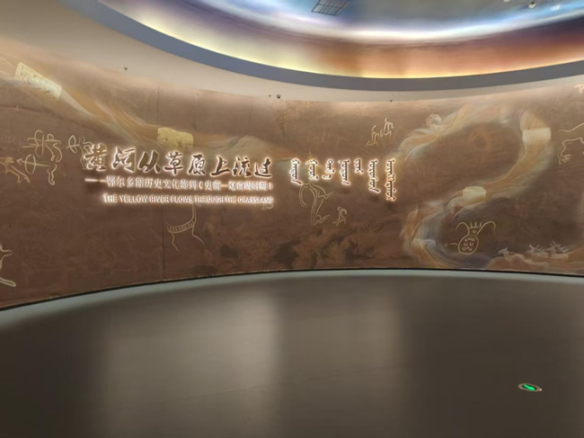 在博物院展厅内,党员们循着“黄河从草原上流过——鄂尔多斯历史文化陈列”的脉络沉浸式参观。从“河套人头盖骨”见证的远古文明,到“朱开沟中华第一铜剑”承载的早期冶金技术,从“鄂尔多斯青铜器”展现的草原丝路风采,到VR技术复原的秦直道盛景,文物与科技的融合让大家直观感受了黄河文化、草原文化与农耕文化在鄂尔多斯的碰撞交融 。在“桌子山太阳神岩画”等文物前,党员们驻足细品,深入了解鄂尔多斯地区在多民族交往交流交融中的重要历史地位,进一步坚定了文化自信。