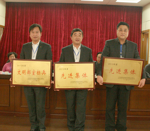 副总经理陈涛向大会宣读了对2013年度公司评选出的“先进集体”、“文明部室标兵”、“优秀中层干部”、“文明职工标兵”、“优秀员工”、“助人为乐道德模范”“‘安康杯’竞赛活动优胜单位”、“社会治安综合治理、计划生育、党风廉政建设、质量标准化建设优胜单位”等各类先进的表彰的决定,接着大会对各类先进进行了颁奖。