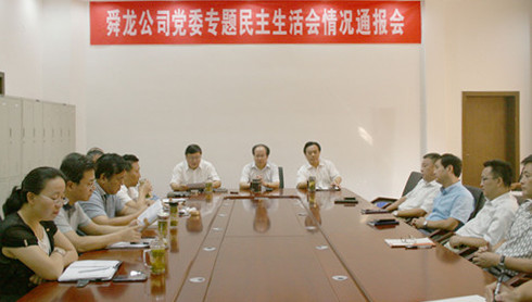 党委书记马刚分别从会前准备情况、会议召开情况、取得成效和整改措施三个方面通报了8月6日公司党委专题民主生活会的基本情况。他指出,此次专题民主生活会与以往不同,一是开门见山、直奔主题。领导班子和班子成员在会上都进行了深刻地自我剖析,集中谈问题、谈差距、谈不足。特别是注重联系自己的工作岗位,对存在的“四风”、小“四风”、“三症”、“软、懒、散、冷、乱、虚”等方面问题,列表象、找原因、挖根源,真正做到了亮出问题不怕丑,剖析自己不怕严,触及灵魂不怕痛。二是既严肃紧张又精诚团结。每位成员在“辣味十足”的批评和自我批评的过程中,都受到了一次深刻的党性教育,使自己的思想在各方面都有了很大的提高,进一步增强了严格遵守党的政治纪律的自觉性;深化了对开展党的群众路线教育实践活动重要性的认识,进一步牢固了全心全意为人民服务的宗旨意识;提高了领导班子发现和解决自身问题的本领和能力,进一步增强了贯彻中央八项规定和廉洁从政各项要求的自觉性;加强了班子的团结协作,进一步提升了班子的整体合力。三是制定了整改措施,明确了目标。针对查摆出的问题和大家提出的意见、建议,公司领导班子认真制定了整改方案。今后公司党委班子将在市经信委(国资委)的坚强领导下,进一步坚定理想信念、坚持求真务实、坚持清正严明,努力把舜龙公司党委班子建设成为领导放心、群众满意、求真务实、团结和谐、清正廉洁的坚强领导集体。