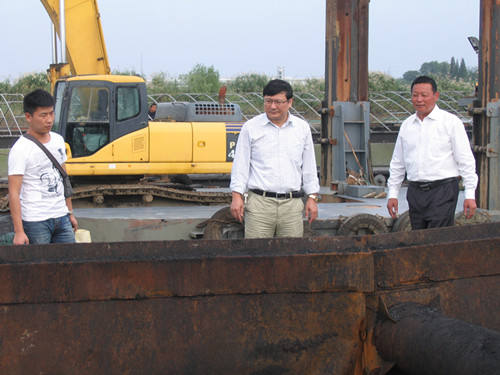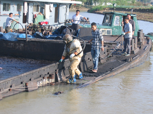即日9时许,在蚌闸海事处、闸管所及水上派出所等相关部门的大力协调下,经多方联系及时落实了起驳吊机和过驳船以及水下专业施救潜水员,下午5时前后他们全部到位。经几方现场研究后,各部很快紧张有序地投入了各自负责的施救工作……
