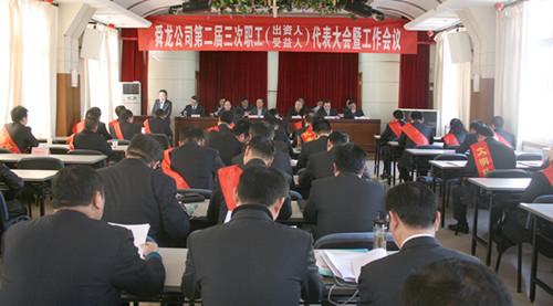 2时30分,在雄壮的《国歌》声中,舜龙公司二届三次职工代表大会暨工作会议隆重开幕。