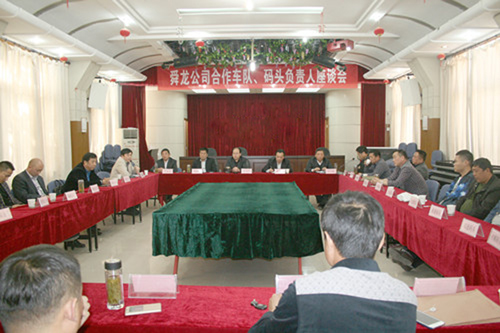 4月16日下午,在二楼会议室,舜龙公司召开了合作车队、码头负责人座谈会。公司董事长余龙怀,副董事长、总经理刘曹应,总经理助理、汽运部部长田学银,总经理助理、航运部部长刘树刚、相关部门负责人以及二十余家合作车队、码头负责人参加座谈会。会议由汽运部支部书记刘文明主持。