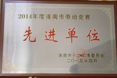 4月30日下午,淮南市庆祝“五一”国际劳动节暨劳动竞赛推进大会在市总工会二楼会议室召开。会上,舜龙公司被授予“2014年度淮南市劳动竞赛先进单位”荣誉称号。